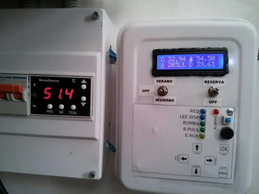 Y el termostato diferencial de la derecha es mi primer modelo construido con un arduino mini, que es mucho más funcional y más configurable que el modelo comercial.