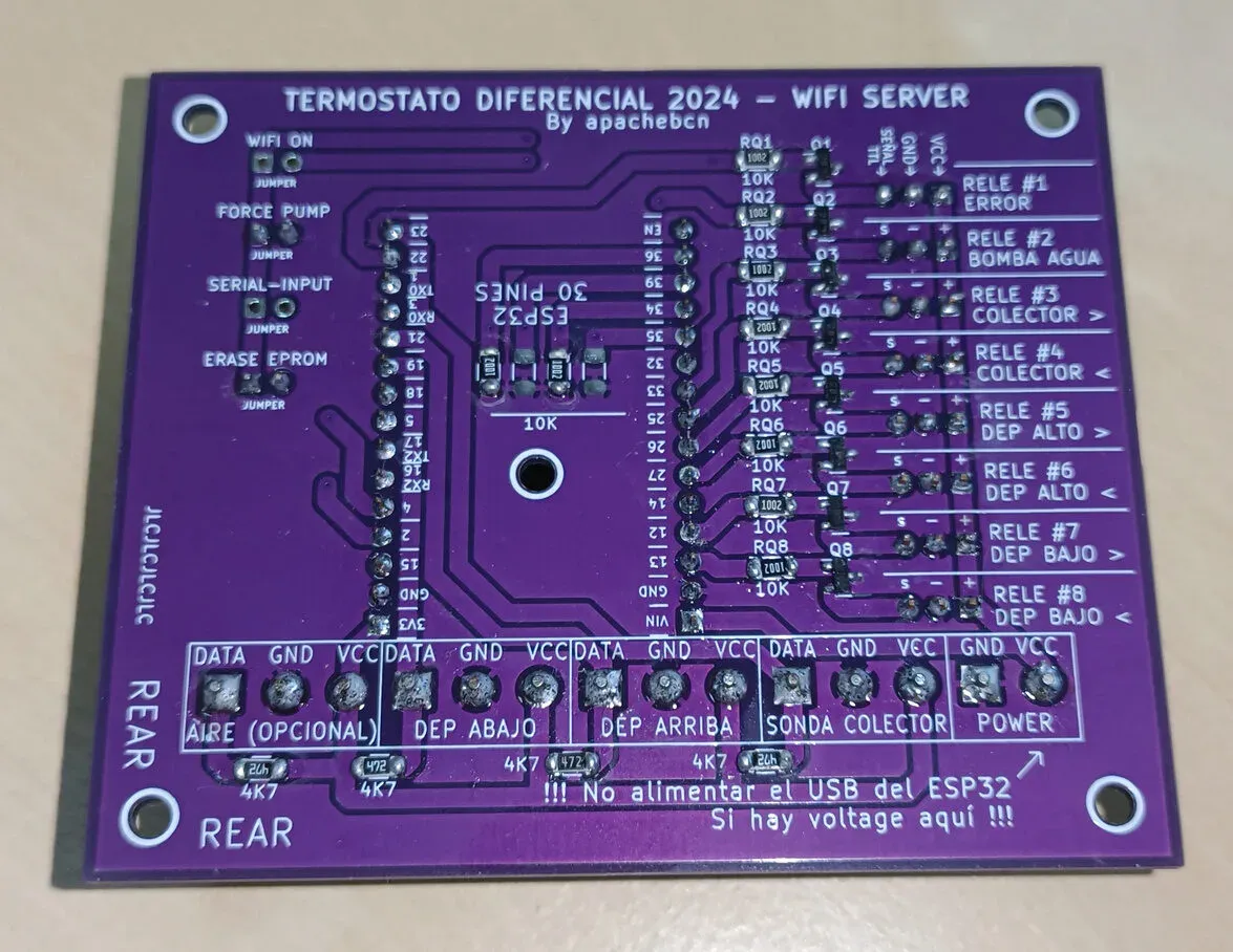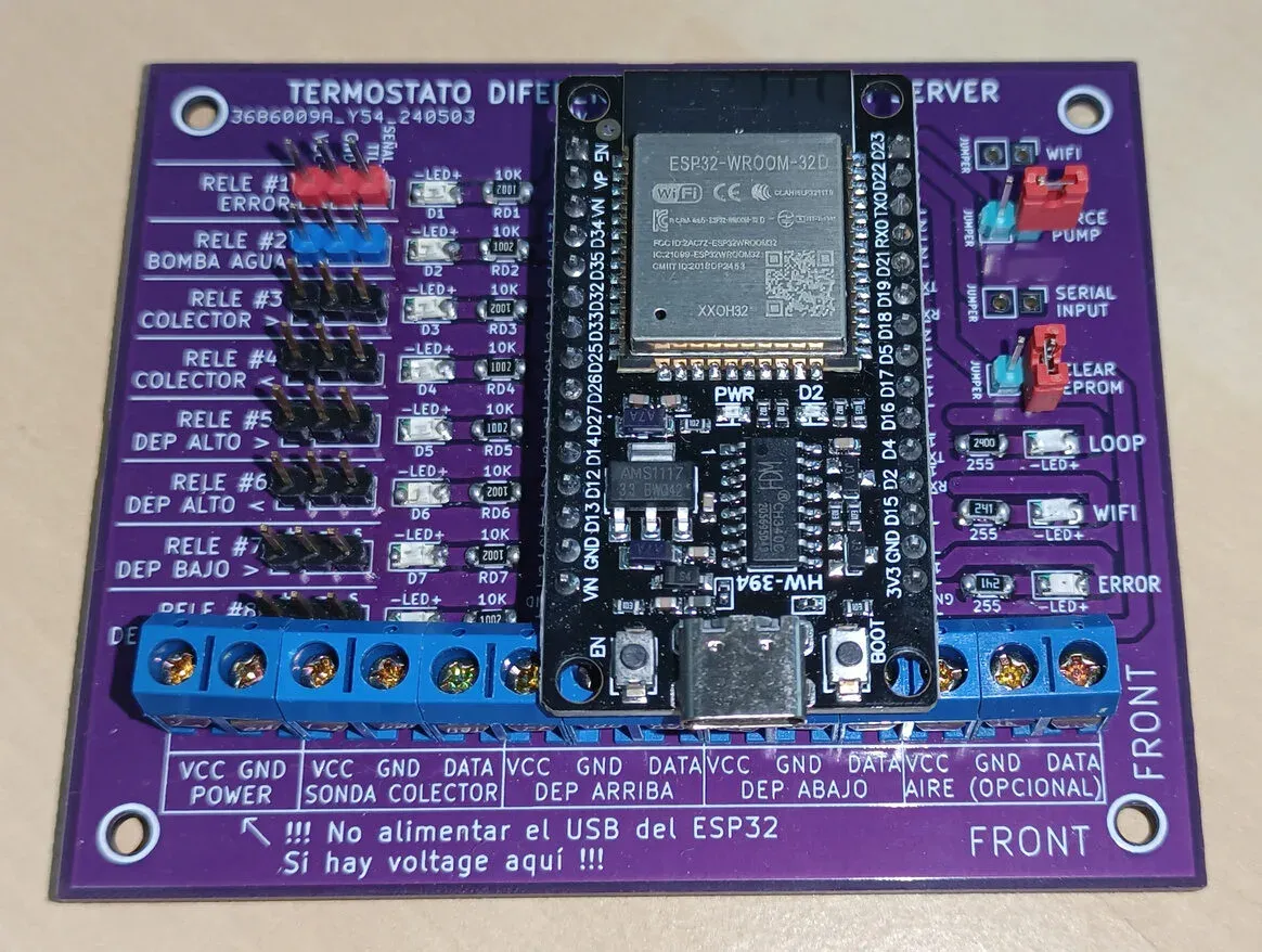 Desacoplamos el controlador Esp32 de la placa del termostato diferencial.