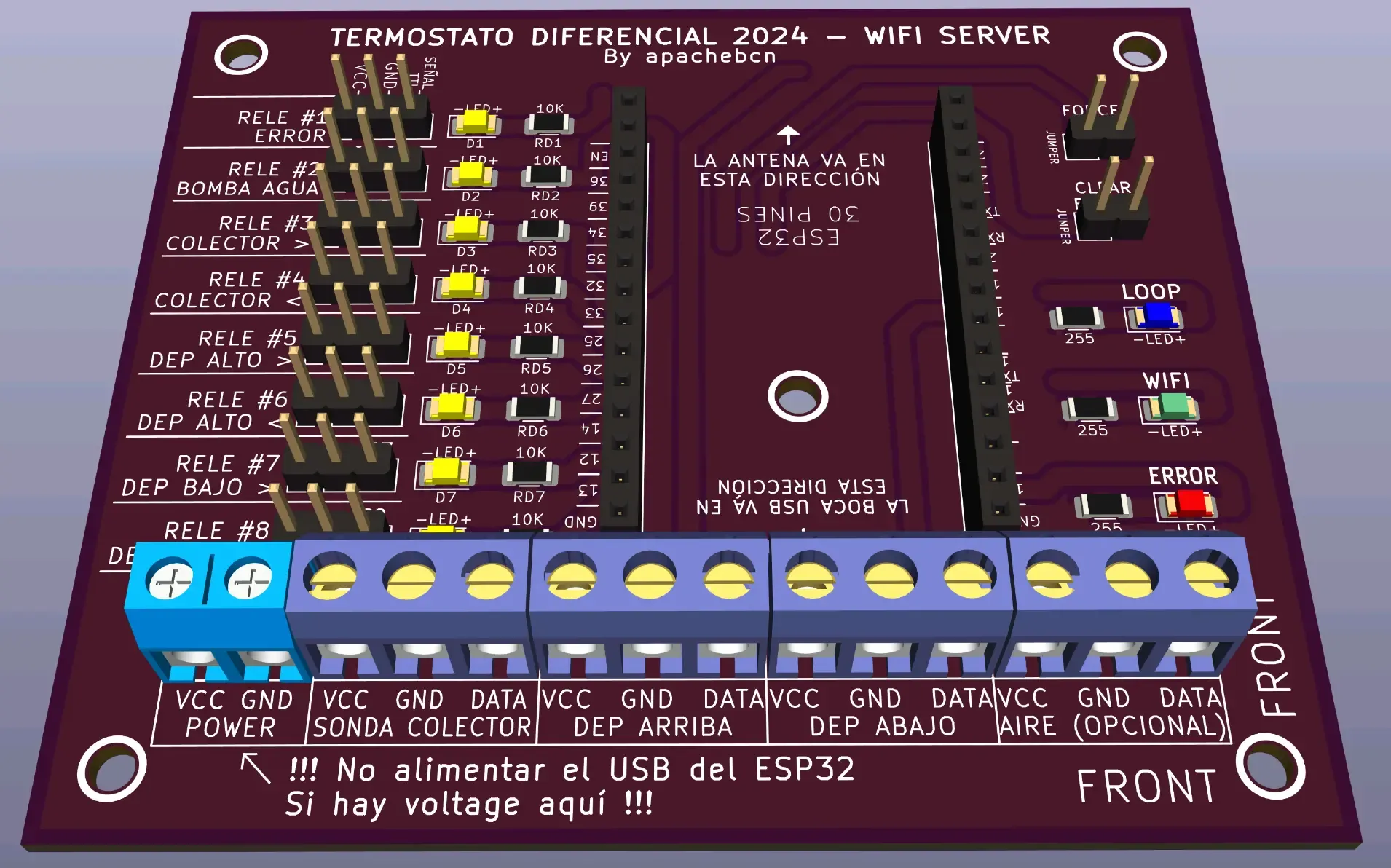 El termostato diferencial con el controlador Esp32 surge para sustituir los antiguos controladores, con la idea de aprovechar su wifi integrado y sus mayores capacidades para poner a prueba las posibilidades de este proyecto.