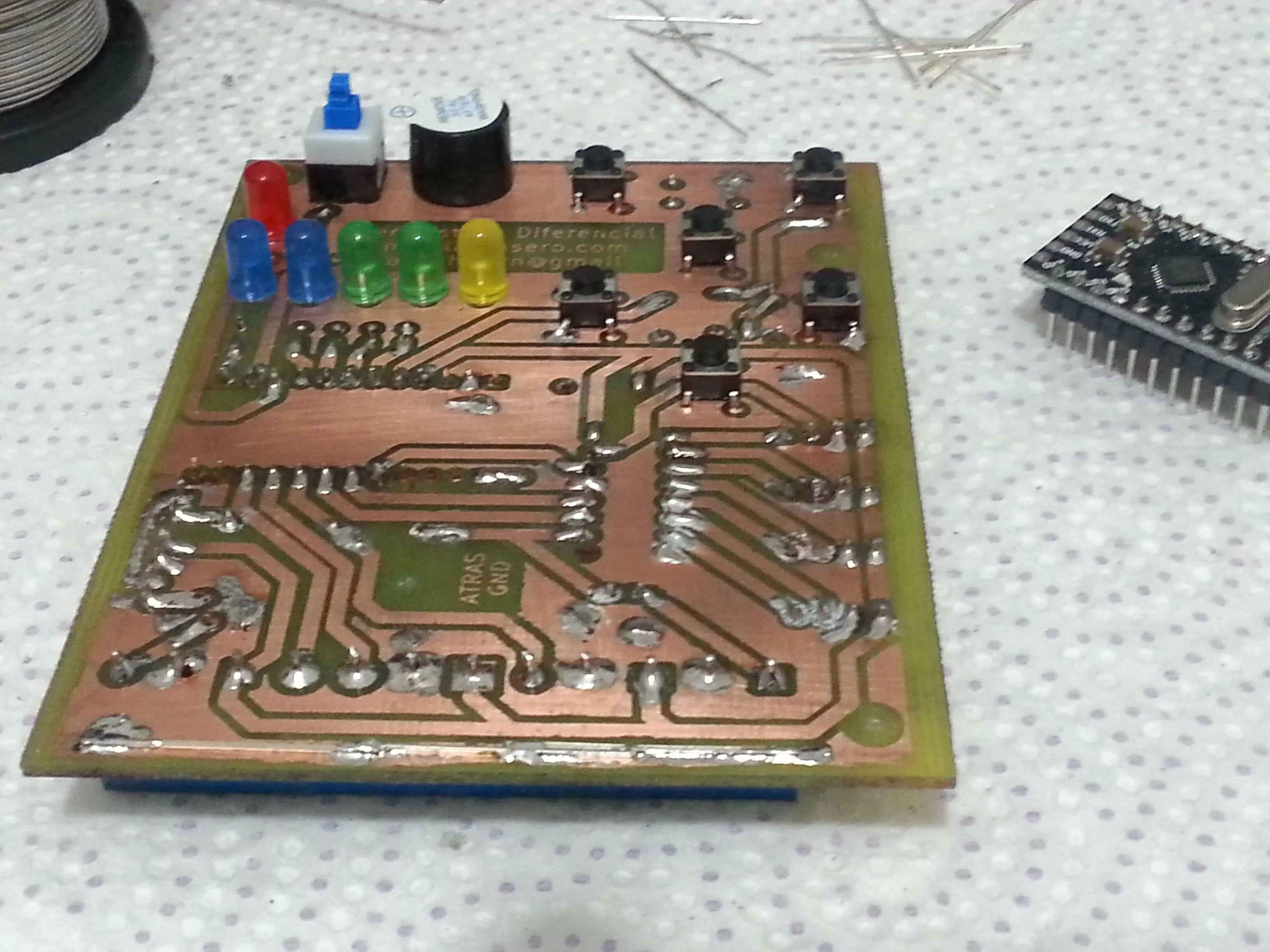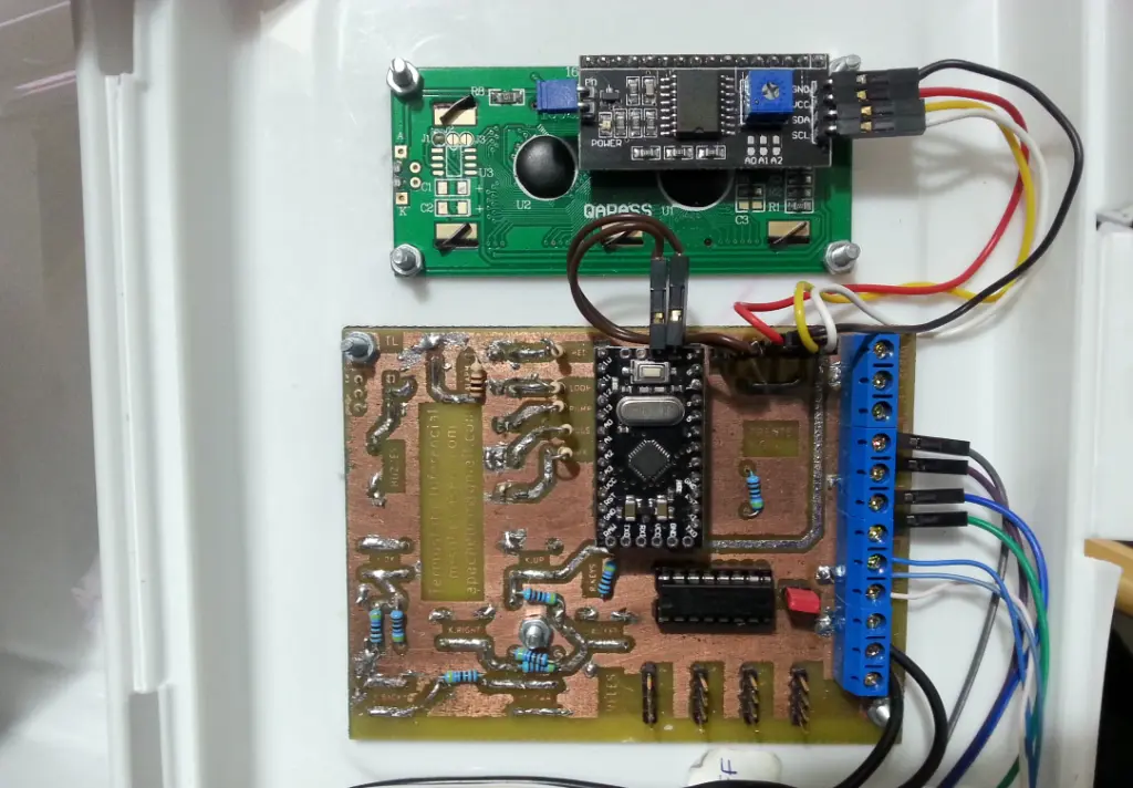 Se compone de un arduino mini, cuyo coste no suponía más de 4€ en cualquier vendedor de aliexpress, y una placa base muy muy sencilla, que podía incluso hacerse con un protoboard o placa pcb perforada o placa de pruebas.
